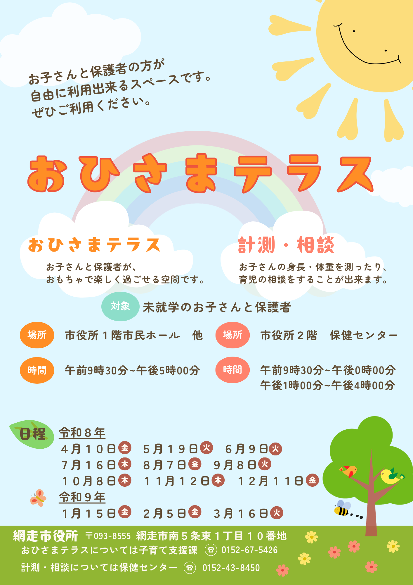 同日(午前9時30分〜午後5時)には、市役所1階市民ホールで「おひさまテラス」が開催されます。
