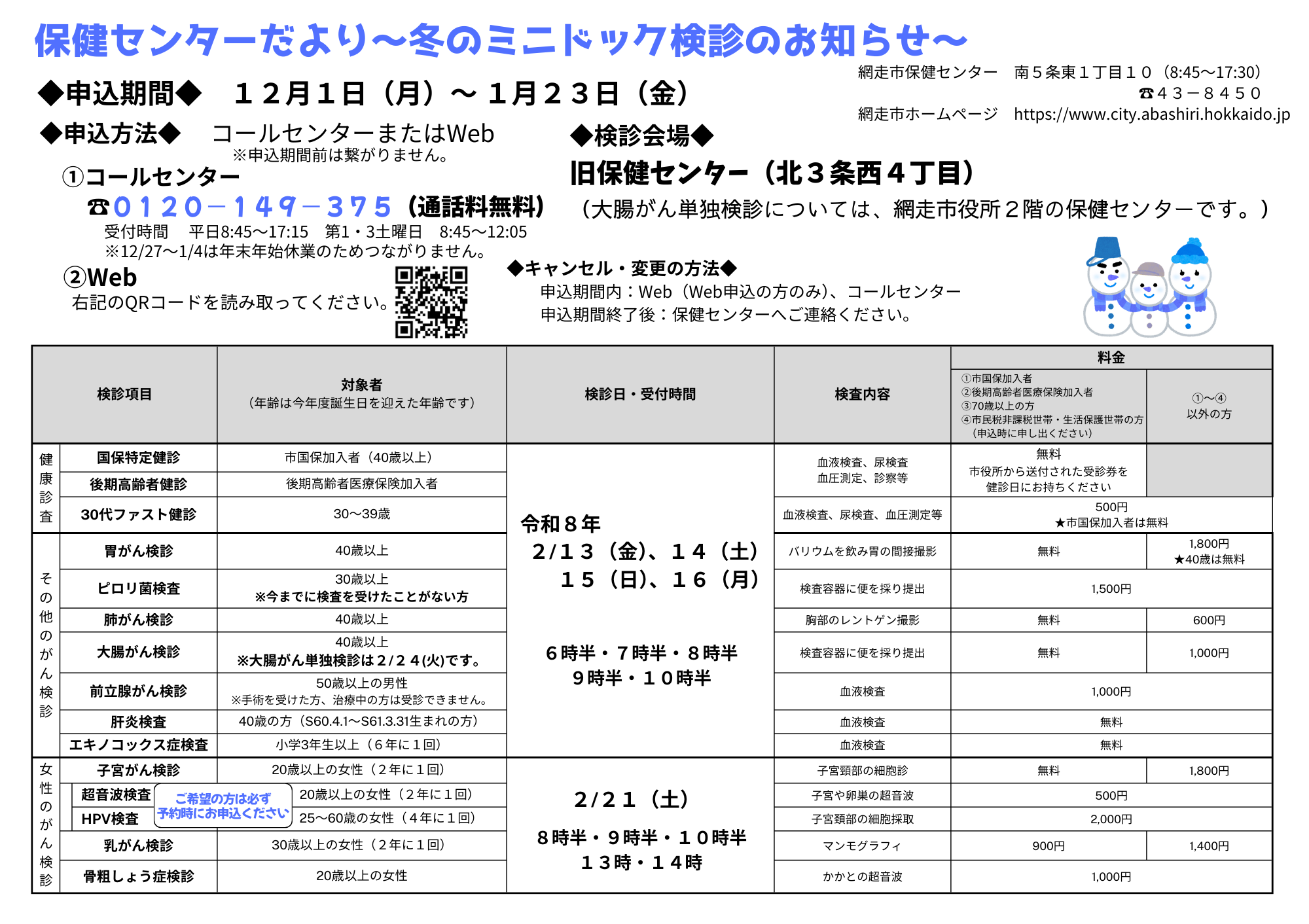 (お子さんの健診は個別に案内を送付します。ミニドック検診は、広報あばしりやチラシ等でもお知らせしています。)